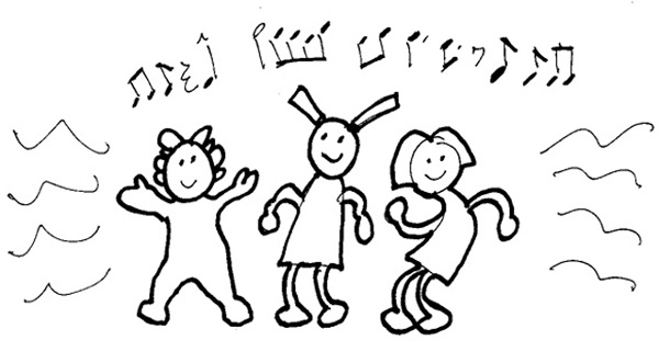 They dance around in front of the camera as the music plays.